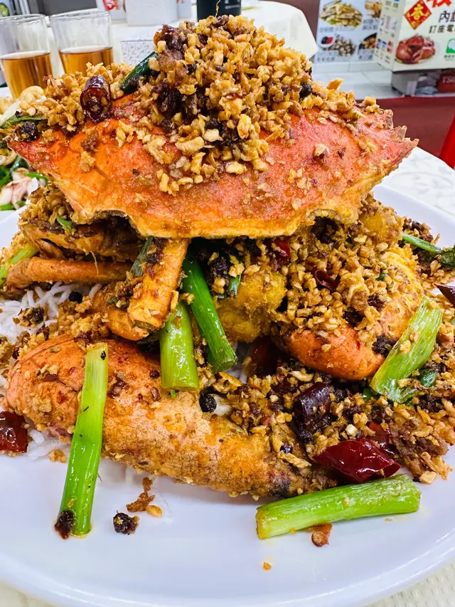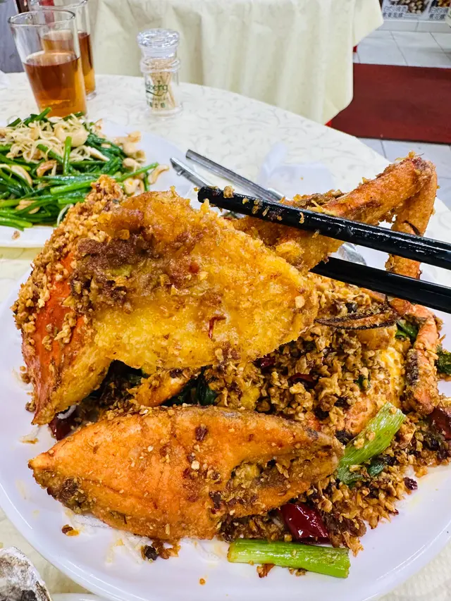 ✅ 避風塘炒肉蟹:隆重登場的「壓軸王者」🦀!肉蟹每隻都飽滿到誇張,蟹肉紮實彈牙,避風塘的金黃蒜粒炸得酥脆焦香🧄,鹹香微辣的滋味,配上熱騰騰的白飯🍚,我直接炫了兩碗!!