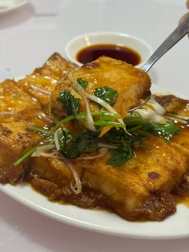 鍋蹋豆腐是山東省的特色名菜,獨有的烹調方法,豆腐經過調味浸漬,沾上蛋液經油煎,加以雞湯微火蹋製,口感細滑十分入味