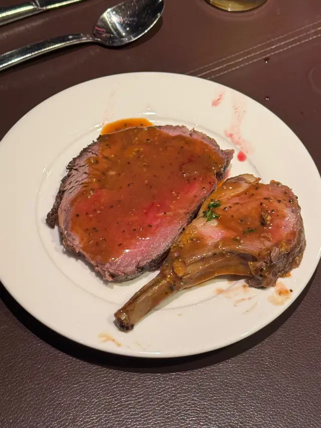 熟食款式吾太多,基本上一行拎得曬,茄汁蝦、清蒸龍躉,點心數款、黑椒牛柳粒、鮑魚炒時蔬,有叉雞同燒鵝。羊架好韌,西冷牛扒🥩看似好嫩但好韌,質素一般。