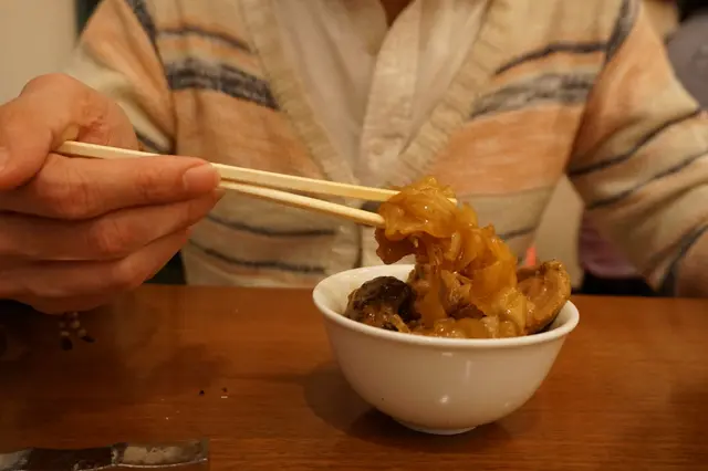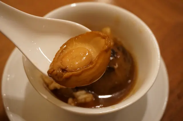 集矜貴、滋補、養顏於一身,怎能不受食客歡迎?輪候美食的隊伍足足繞場一圈。人手充足之下流轉也快,要多吃幾轉也非難事!花膠以蠔皇鮑汁扣煮入味,滑溜溜的花膠除了美味之外,也有美顏的作用,份量亦相當慷慨。小小的鮑魚是真鮑,蠔皇汁醬鮮香不會太鹹,還加以脆米吸收汁醬精華,實在是美味又珍貴,難怪會成為全場最受歡迎的美食。