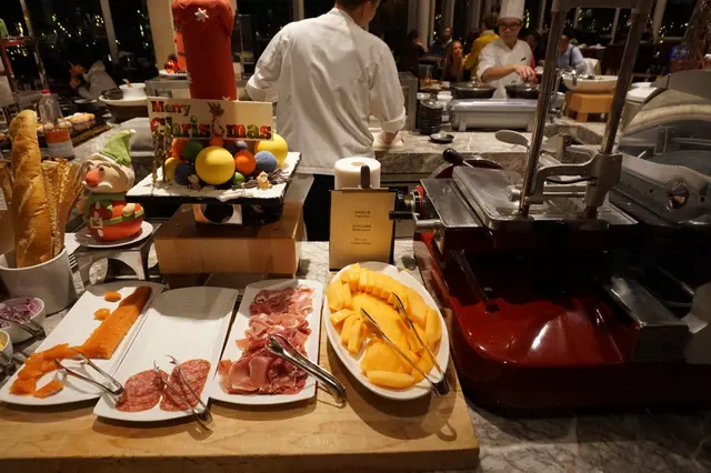 這Surf x Turf平日是最豐盛的主菜,如今以任食的方式出現在自助餐桌上,是要有一定食力的才能駕馭它吧!當廚師把烈酒灑在烤爐之上,頓時眼前一片火光紅紅的,視覺上相當震撼。足半隻加拿大龍蝦新鮮爽彈,以芝士香焗港最為美味。而美國肉眼更見驚喜,用刀切開是粉嫩嫩的肉心,稔軟而不帶筋, 肉味極濃郁,自助餐來說是難得的高水準。