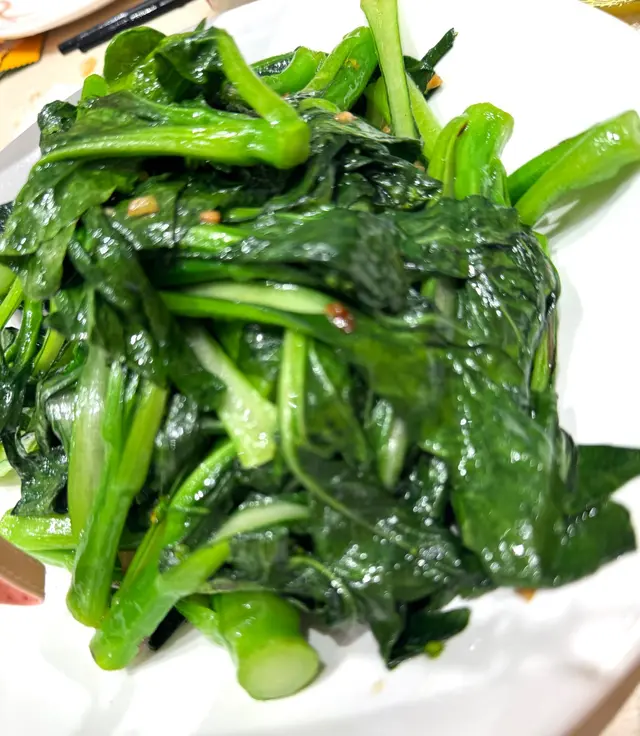 清炒芥蘭 , 新鮮 嫩綠, 蒜蓉醬油炒制, 味道清甜.