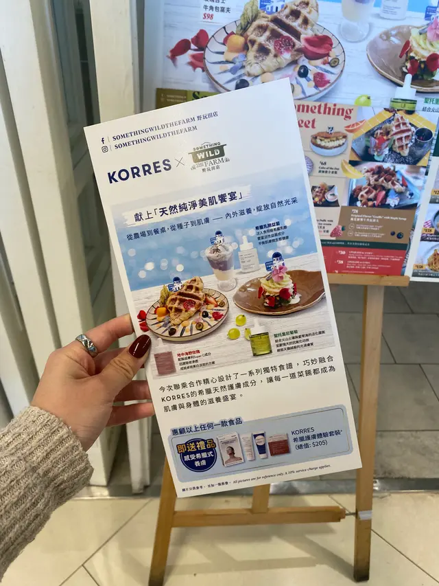 擺盤及顏色都十分亮麗,以地中海野玫瑰作為點綴食用花,配上雜莓及香草味吉士。牛角包窩夫熱辣辣又香脆,牛油味香口但唔會油膩,配少少水果一齊食,酥脆中帶點酸甜。