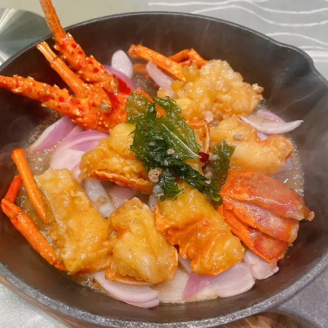上枱鐵板滋滋聲好誘人,胡椒熱香撲鼻,龍蝦肉厚身彈滑,肉甜而清,完全冇淤味🦞。汁收得啱啱好,帶少少胡椒辛香提鮮但唔搶味,咬落爆汁,鮮味直線上升,證明貨靚手勢準。