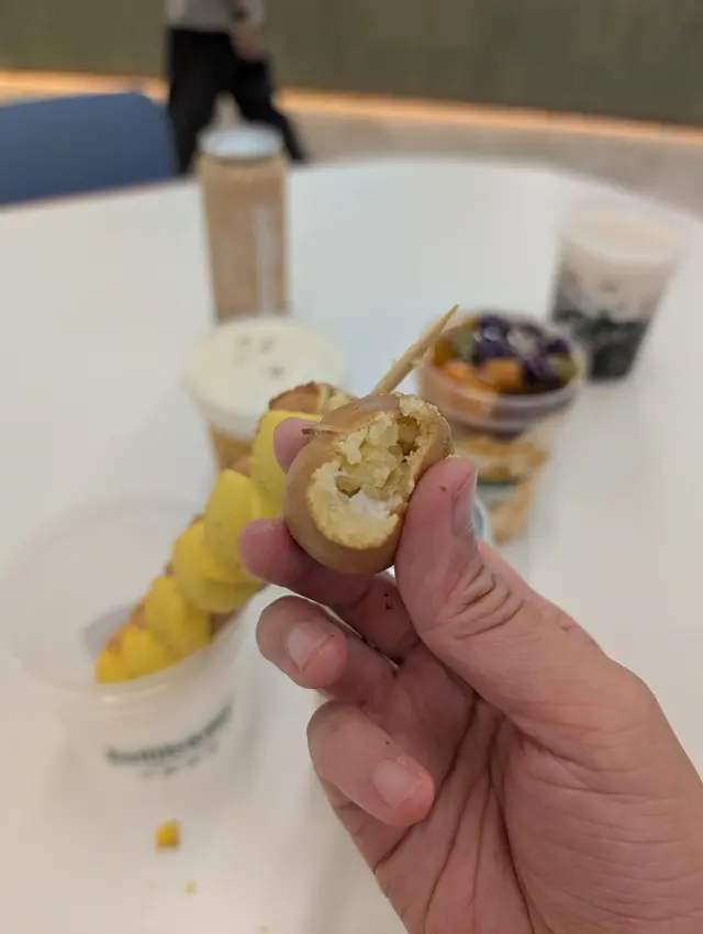咬落去,脆卜卜嘅外層同軟糯嘅麻糬面煎糕撞埋一齊,口感好豐富,