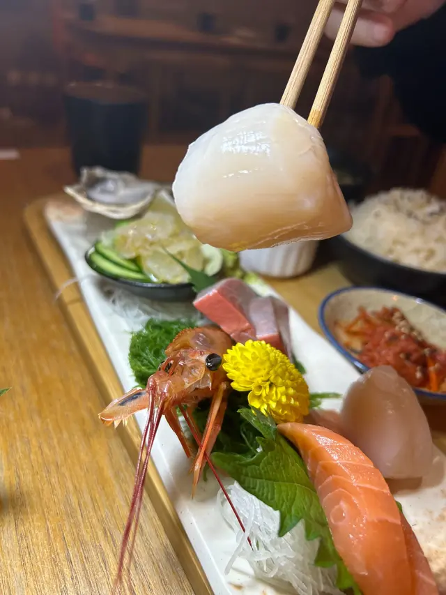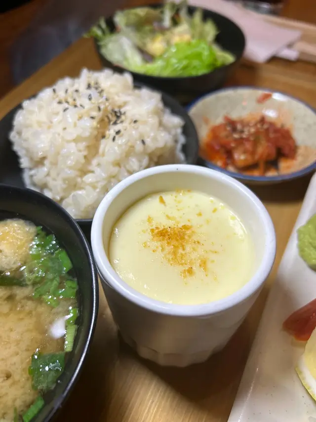 首先是刺身定食($228),這道刺身料理非常新鮮,包括有兵庫縣生蠔、水母刺身、帶子、三文魚等!海鮮魚片切割得非常精確,每種刺身都有獨特的風味和質地,展現出鮮美的色澤和鮮味,別具豐富的層次和風味。定食套餐包有日式蒸蛋、麵鼓湯、珍珠米飯和前菜等等,使整個套餐更加豐富,令人愉悅。