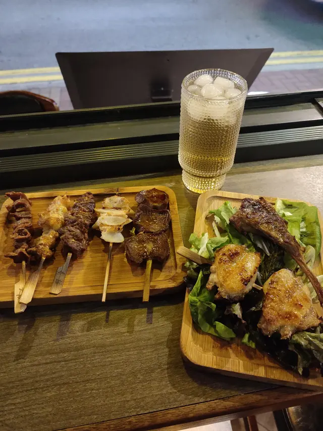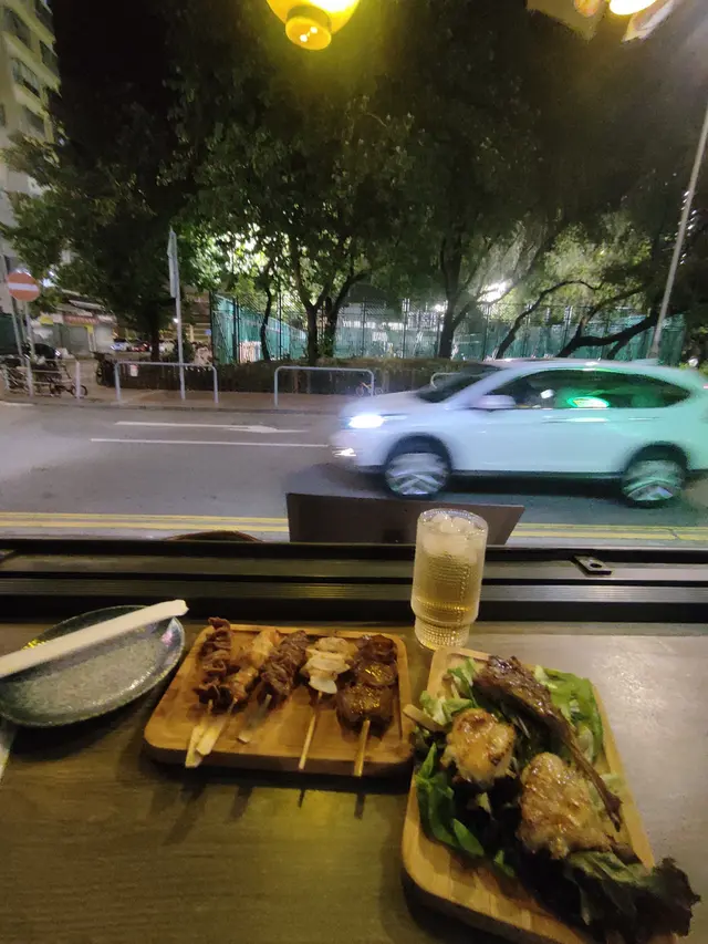 週末一人無事,揾一間串燒店坐落臨街的窗口味,靜靜地享受宵夜,望住對面一班好有精力和活力的後生仔打波,飲住冰鎮的蘋果汁,都幾chill幾寫意喎