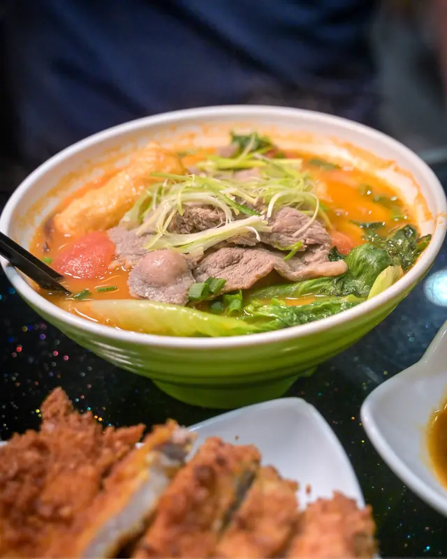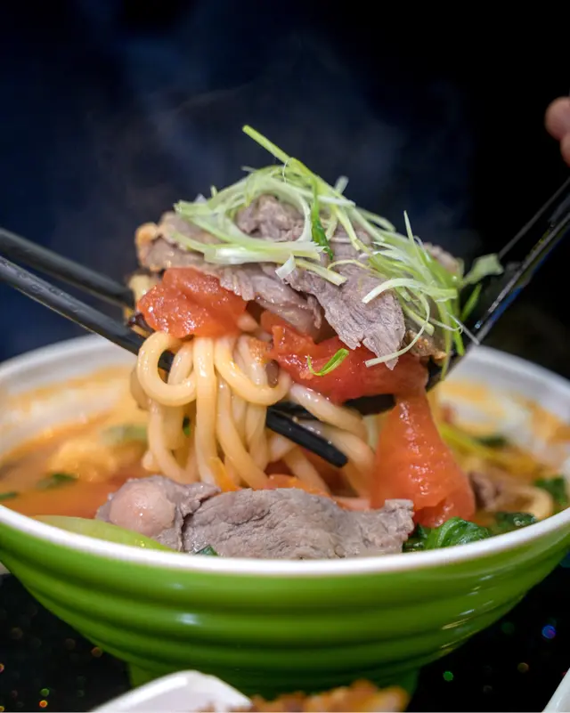 整碗色彩非常豐富足料,牛肉肉質嫩滑,烏冬與醉鮮麵一樣爽口順滑,加入鮮茄薯仔蓉之後成為蕃茄湯底。