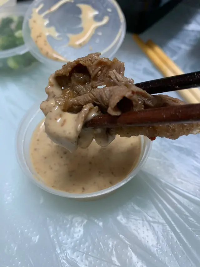 美國牛板腱肉的油花均勻,牛味濃香,口感柔嫩,牛板腱切片加上香濃的辣湯,味道跟肉汁一樣咁正呀!