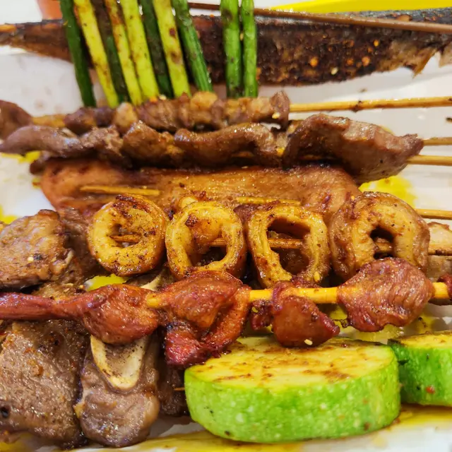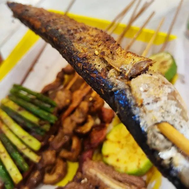 自選串燒:牛肉夠鮮嫩、牛舌有咬口、羊肉肉質鮮美、豬腩肉金黃酥脆、豬頸肉脂肪適中、豬大腸外焦內嫩、雞腎鮮香有彈性、燒秋刀魚鮮美焦香、四季豆和翠肉瓜則有清新的口感,平衡了整體的油膩程度。每一串都烤得恰到好處,讓人垂涎欲滴!😄😄😄