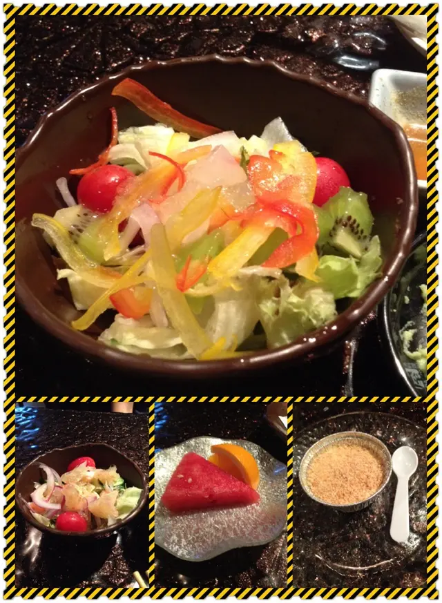 柚子大蝦沙律及大喜屋沙律, 兩款都係酸酸甜甜好開胃, 食得飽飽哋可幫助消化