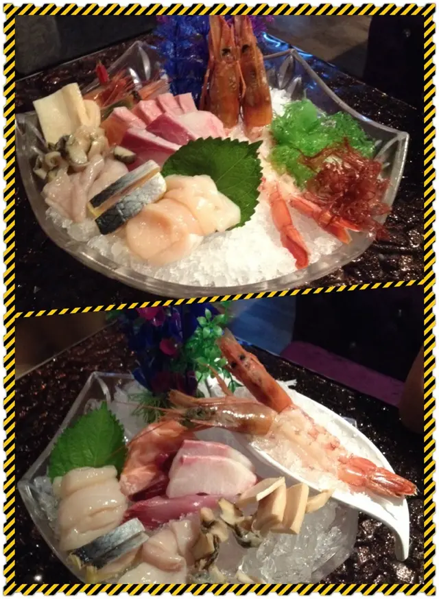 因為我係食下午放題, 諗住食咗粟米蟹粥暖下胃, 再食刺身, 點知都係嚟咗刺身先, 見到個樣已忍唔住口, 所以都係食咗凍嘢先.