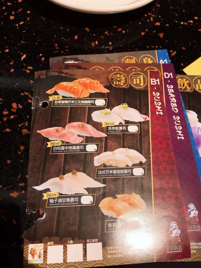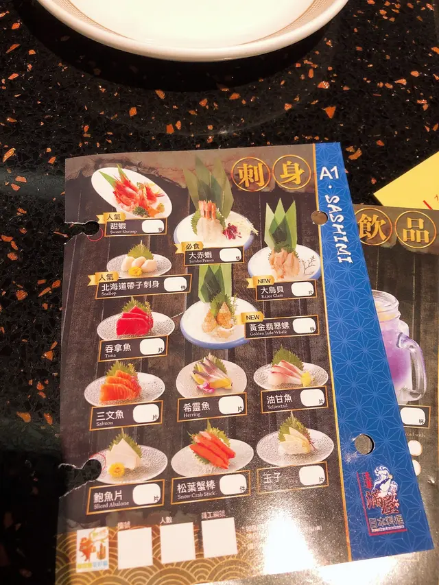 我們上到去後,只見至尊滿屋裡面人頭湧湧,幸好我們有訂座,可以馬上入座。放題除了食物吸引之外,看點餐紙亦是非常與奮。我們首先將所有點餐紙撕一張,再慢慢選擇。為免整桌都是食物,我們都是分了2-3輪遞紙,方便自己。我的個人技巧為1. 刺身及壽司; 2. 炸物及小食; 3. 熱食類。由於我們點了不同款式,我就精簡地選出必食的5款供大家參考: