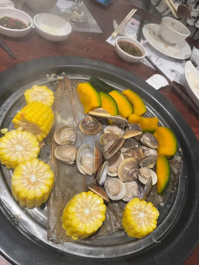 當晚同一班朋友用餐,眼見全場都只有我地呢檯叫蒸海鮮,心諗質素唔知好唔好。海鮮開始送黎,有龍蝦,蜆、鮑魚、蝦、雞、另外因為呢個係四人餐既關係,所以額外添加多個馬拉糕同埋聖子。開始逐樣逐樣蒸,最深刻印象就係個龍蝦同埋蟶子,鮑魚就韌咗啲,好難切開嚟食。整體海鮮都好新鮮,係蜆嗰度有幾粒仔蒸完兩轉都係唔開口,就要求侍應更換,餐廳都好好,肯更換俾我哋。