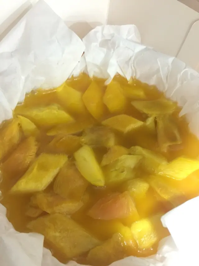 女朋友一看見就急不及待拆開,蛋糕外形說不上十分精緻,但有滿滿的芒果撘救。