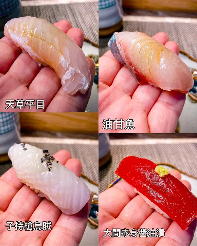 頭兩款壽司相對有咬口,平目偏向腩身位置,