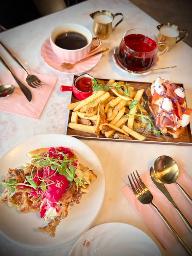 與閨蜜 High Tea 必到的打卡餐廳 Clareylee等级42024-01-24194 浏览 关注 K11 Musea裡面呢間餐廳佈滿數不盡的山茶花配上粉色嘅主題.非常吸睛充滿少女心下午茶時段有自選配搭嘅Menu可以選擇唔同口味/ 配料嘅Croffle同Bagel配上靚靚餐具賣相同擺盤相當精緻✨牛角窩夫▫️酥炸軟殼蟹.椰菜沙律.焦糖香蕉▫️Parma Ham.煙三文魚.迷你水牛芝士Tea Set 配上餐飲仲可以追加小食✨炸薯條最鍾意粗身連薯皮嘅薯條熱辣辣又香脆1✨Cheese Cake 芝士蛋糕口感幼滑細膩入口即化同姊妹們打卡聚會嘅好地方以上食记乃用户个人意见 , 并不代表OpenRice之观点。赞好分享與閨蜜 High Tea 必到的打卡餐廳 Camellia https://s.openrice.com/QrLT01a1G00检举 张贴 评分5味道5环境5服务5卫生5抵食用餐日期2024-01-24用餐途径堂食用餐时段下午茶