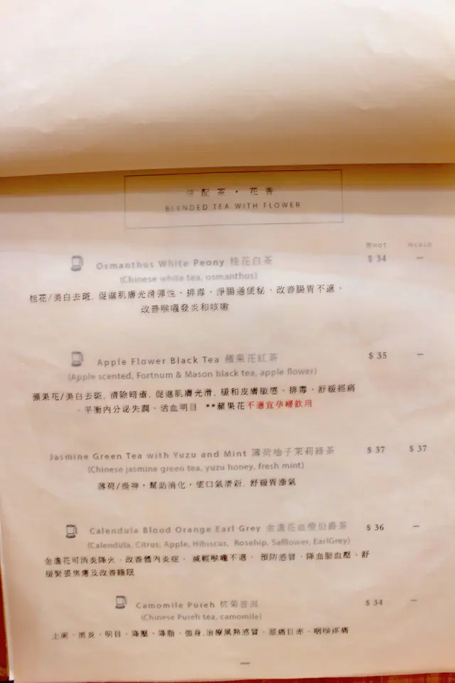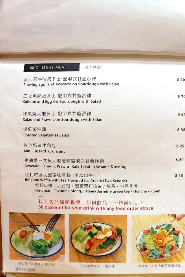 除了茶類甜品和飲品外,就連各款鹹食都結合茶的元素實在出人意表,而餐牌上更有不同茶飲的功效說明,相當貼心,亦加深客人對茶的認識。