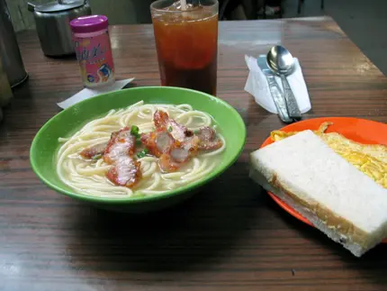菴列煎得不錯,切開火腿連蛋油流出,實在不要浪費件牛油方包,點上蛋液吃,不知多好.叉燒湯意十多年如一.湯底沒有曖昧的顏色,味道幾清.叉燒外來貨,以地域來推斷,在廿幾碼之遙的洪慶,應該係最大嫌疑者.