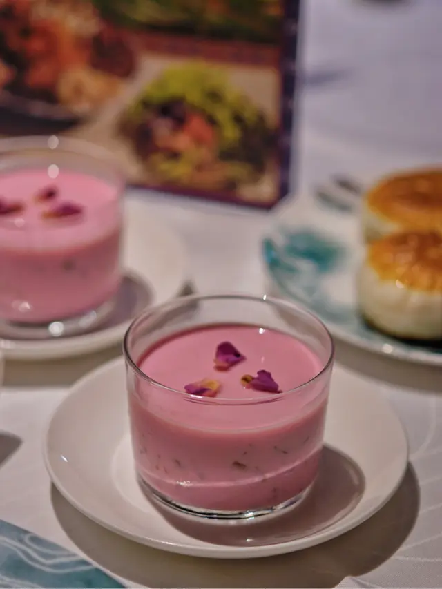 甜品「玫瑰花香鮮奶凍」為盛宴作完美結尾。以雲南玫瑰花醬製成,奶凍質感極致順滑,入口即溶。