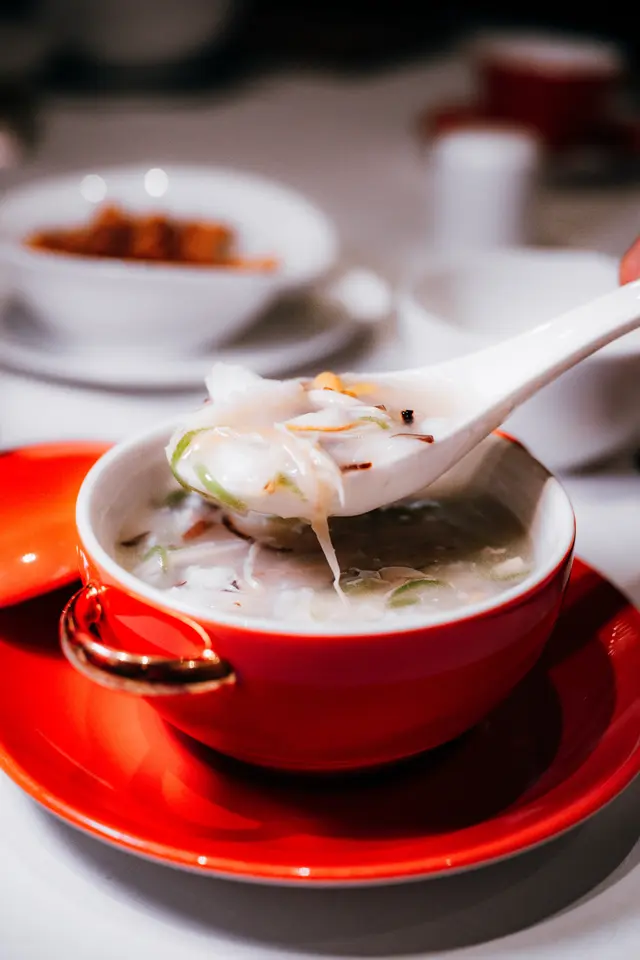 第二道的松子星斑拆魚羹。湯底走清淡咸鮮風。