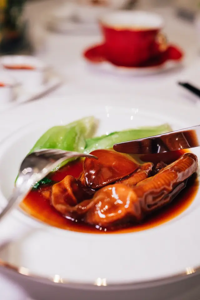 蠔皇鮑魚扣鵝掌。鮑魚軟軟的,鵝掌入味,兩者搭配得剛剛好。