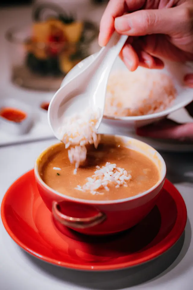 龍蝦湯脆米海鮮泡飯。湯汁濃郁,脆米和海鮮一起吃,香得不得了!