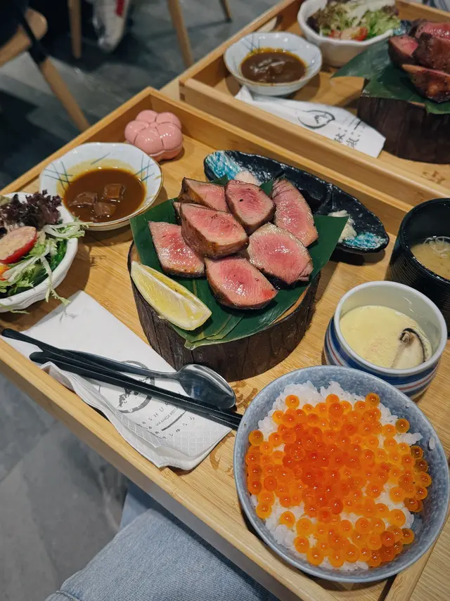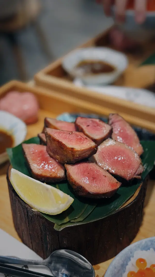 ・味道:呢個牛舌芯唔係軟腍係彈牙已經有啲surprise,仲要係非常十分超級彈牙😂,外皮燒得好香,未到焦脆級別,簡單以黑椒調味已經好香口。睇落好令身但唔油嘅,不過有加檸檬汁嘅必要,中和到油膩感🍋!醬汁有日本粉紅鹽、照燒汁、日式蔥油,正常冇伏,不過個人認為就咁單食牛舌,食返佢原本牛肉香係最正的🤭加錢轉嘅三文魚籽飯,三文魚籽油甘包住啲珍珠米,鹹鮮味十足,不過食耐咗都係會膩XD 套餐另外配埋沙律、牛舌咖喱、茶碗蒸、味噌湯。沙律同味噌湯正常冇伏,茶碗蒸嫩滑有蟹柳幾新鮮,重蛋味;反而牛舌咖喱一般,牛舌變咗偏老嘅牛肉粒~ 不過整體呢個價錢算幾抵食👍🏻!