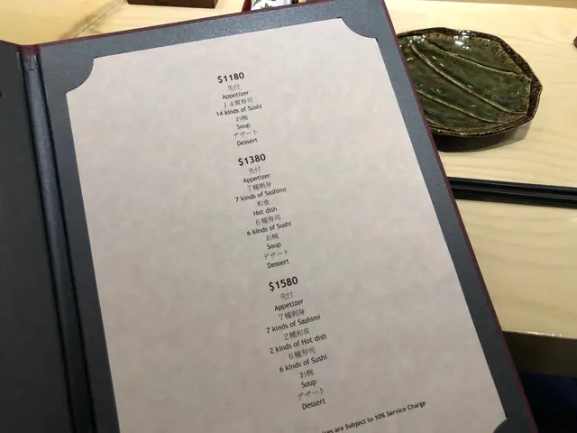 無菜單料理其實也有菜單可供選擇,分別有三個價位,由$1180至$1580,我們就選擇了主要吃壽司的$1180set,包括了先付、14貫壽司、湯和甜品。