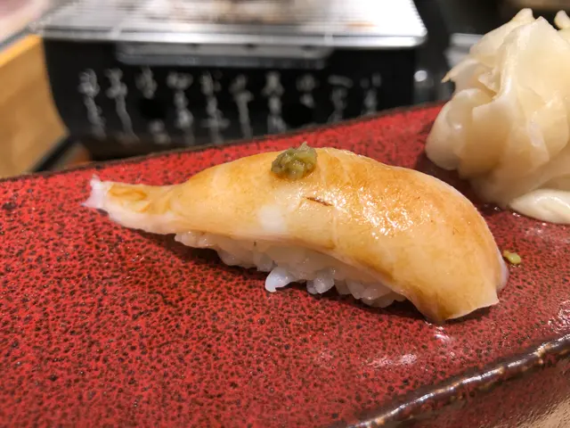 來自北海道的響螺,師傅將之厚切,一粒壽司有2片厚厚的螺肉,再輕輕抹上醬油,不用太多的調味,已能帶出螺肉的海水味、鮮甜。