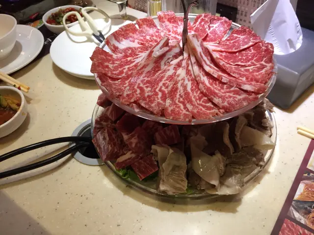每枱仲可以點5個配料,所以我地都點咗肥牛、牛仔粒、蝴蝶腩、凍豆腐同響鈴。