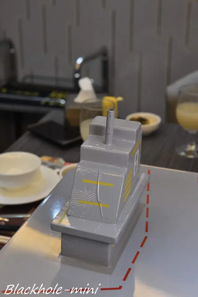 看過海鮮盛宴的真身,再蓋上甲板等一會艦橋頂突然開始冒煙,原來艦橋不只是裝飾而是有其他作用。
