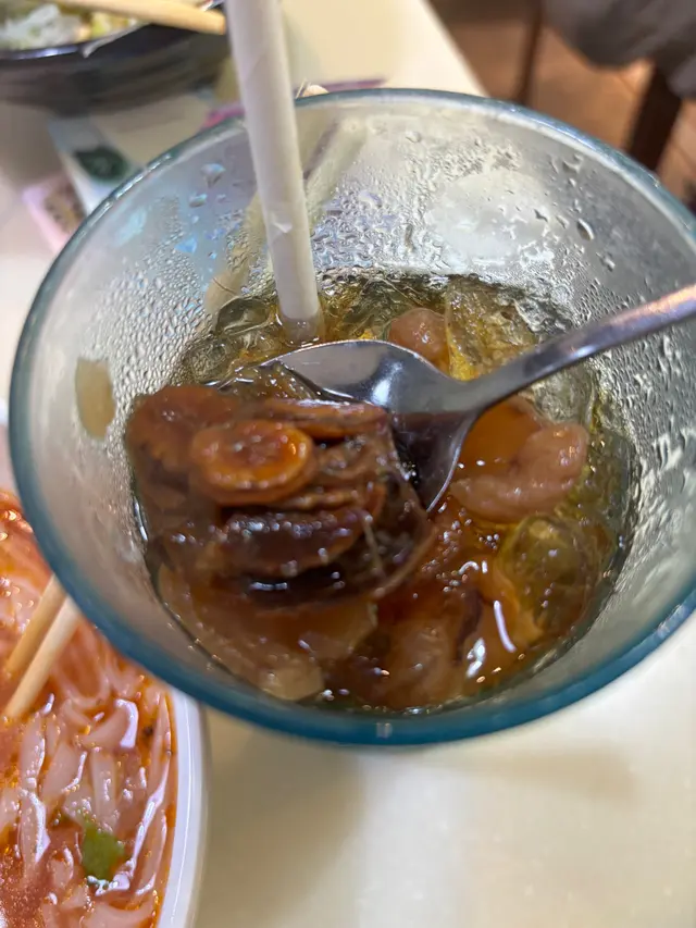 今日中午約咗同事一齊食午餐,我話想食越南河粉,跟住我哋就上網搵吓灣仔區有邊到食越南菜,ok就選中您「大叻越南牛肉粉餐廳」,都不用等位就直接可以入坐,太Lucky了,原來只剩兩張枱,都已坐滿了客人,待應都很心急招呼我們,我們點了兩份午餐,蝦餅撈檬🍜$60,鮮茄牛坑腩河粉🥘$60 + 2杯特飲 凍龍眼冰另+$10。