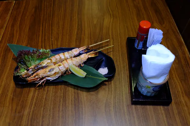蝦肉脂肪偏少而肉多, 正合我意~ 未食都聞到油香四溢,正正係蝦串燒唯有既特徵之一~ 我同朋友每人都食到一隻, 我最中意當然就係落埋檸檬汁, 對我黎講, 無檸檬汁就無咁好食