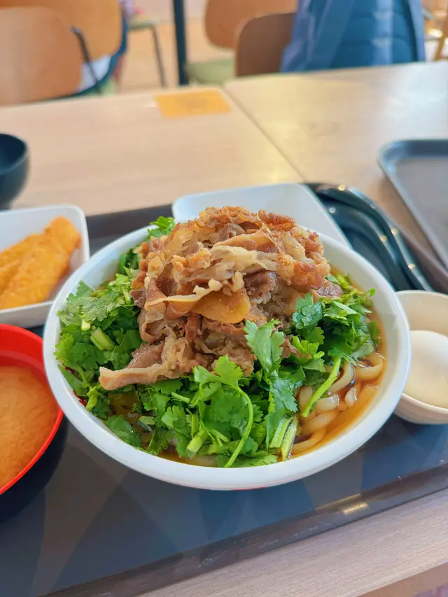 雖然呢度牛丼飯比較出名, 但我個人建議可以轉烏冬, 因為我好鍾意呢度幼身嘅烏冬, 加上似壽喜燒嘅湯底, 甜甜地, 同牛肉嘅配搭都好襯😍同埋芫荽控嘅朋友有福氣 我今次自己加$8 叫咗一整碗嘅芫荽 非常新鮮 配烏冬&麵豉湯更好👍🏻溫泉蛋凍凍地, 我自己打咗落個碗度 好似當湯咁 一口就飲(食)晒 勁爽😂😂