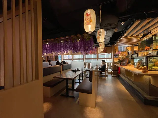 呢度環境闊落,居酒屋嘅設計🏮配合埋花花主題🌸,頗具特色的。另一邊廂,近廚房位置放咗幾個水缸,入面養住大大隻龍蝦。