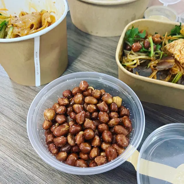 一直都好鍾意呢間涼皮小店嘅炸花生。今日買涼皮嗰陣發現,終於有得賣!二話不說,即刻買佐一盒!
