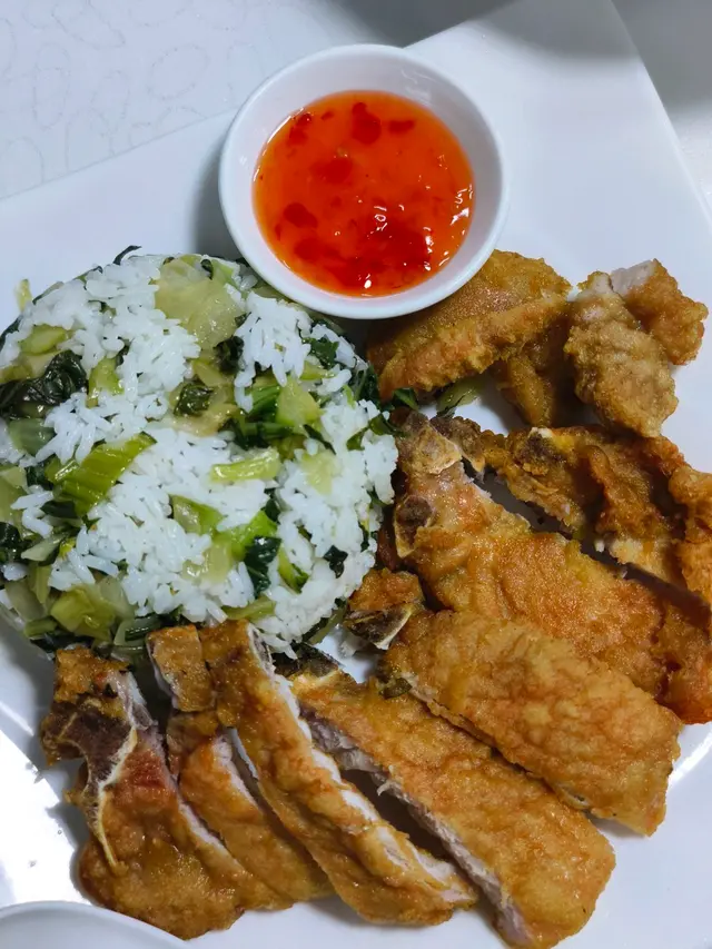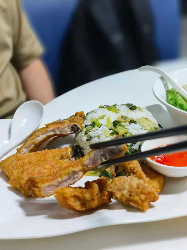 排骨即炸超香脆!咬落「咔嚓」聲肉質juicy唔乾柴~菜飯粒粒分明,混咗少少豬油香🥹邪惡但停唔到口啊!