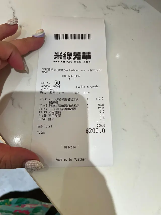 花膠雞湯米線🤤!暖笠笠😋!$78! foodrnt等级42025-09-24140 浏览 关注 🌸招牌花膠蟲草花濃湯雞 $78🌟🌟🌟🌟🌟份量十足,有滿滿膠質既花膠、爽口蟲草花、鮮嫩無骨雞件,濃湯鮮甜重雞味。🍀米線就爽口彈牙,一啖湯一啖米線食得好過癮。🌸芳華靚湯鍋🌟🌟🌟🌟🌟🍀吊龍 $108肉質嫩滑,帶有筋位,非常好味🍀黃酒濃雞湯 +$12黃酒濃雞湯夠濃郁,黃酒味夠香,飲返碗湯可以暖吓身。🍀奉送火鍋拼盤(彈牙墨魚丸、重魚味魚片頭、爽口牛丸、魚皮餃、響鈴、豆卜、娃娃菜、金菇、冬菇、鮮甜蘿蔔片)🍀薯粉 +$2薯粉夠煙靭,煮到透明狀態,薯粉朔晒湯底,非常入味。🍀熱柑桔茶濃郁柑桔茶,飲完喉嚨非常舒服。15以上食记乃用户个人意见 , 并不代表OpenRice之观点。赞好分享花膠雞湯米線🤤!暖笠笠😋!$78! 米線芳華 https://s.openrice.com/QrLT0ourU00检举 张贴 评分5味道4环境4服务4卫生4抵食用餐日期2025-09-21用餐途径堂食人均消费$100 (午餐)