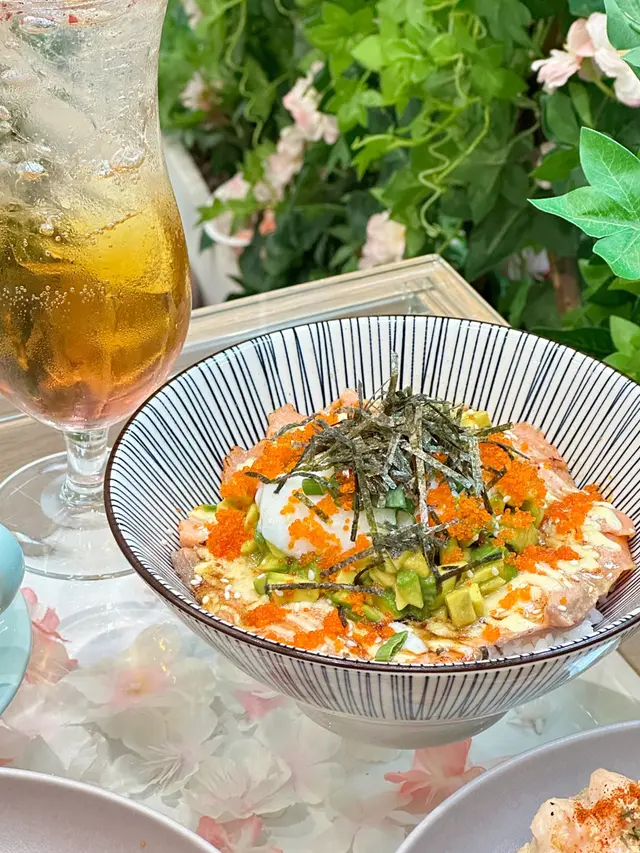 👅 火灸三文魚牛油果丼配溫泉蛋($138)