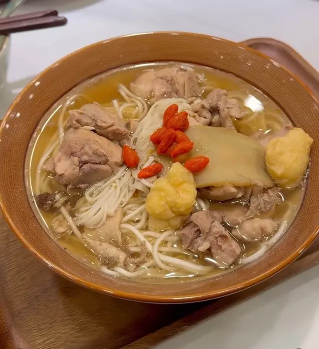 之前食過滷肉飯好滿意,今次想試下其他。花雕麻油雞湯麵我見唔多台灣餐廳有,飲落都真係掂,啲酒香唔會太濃,重中藥味湯底帶甜,雞肉煲過就唔算滑,飲完身體即刻暖晒。最驚喜係店員話上面曾油係麻油唔係雞油,又真係幾香麻油味🤔