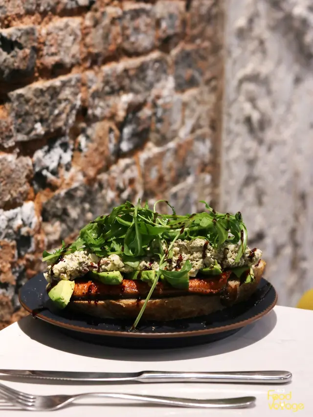 大大片三文魚蓋在酸種麵包上,豐腴的口感令麵包增加不少鹹香,以為牛油果會是主角,結果被三文魚強去焦點,牛油果熟透程度剛好,不會太硬又有牛油果香,沙律菜新鮮爽口,還有洋蔥添加風味,不過相比之下前者更會令人追吃。