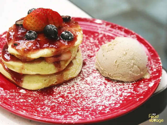 pancake上有一大球大紅袍雪糕,大紅袍的味道非常鮮明,甘醇的茶香雪糕配上自家製pancake豐富了口中的味道,值得一提是pancake口感比較實在,而且沒有死板的麵粉味,反而有陣陣蛋香,微脆的外層零甜品更有口感~只是士多啤梨太酸,我個人不太喜歡。