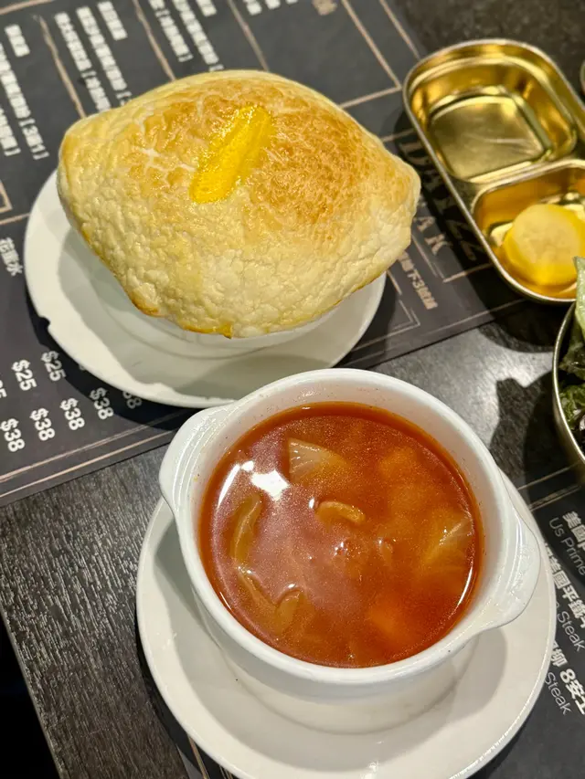 酥皮脆卜卜,浸落忌廉湯索晒味,仲有好多蘑菇粒,飲完成個人都暖笠笠!