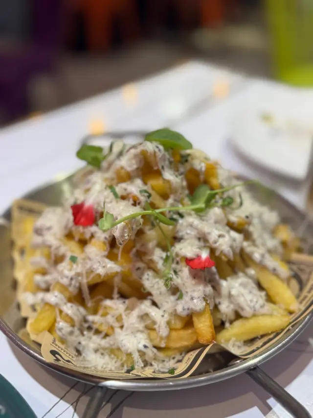 🔶黑松露雪山芝土炸薯條 - 薯條份量十足,在薯條面上加上大量芝士粉,松露醬世一