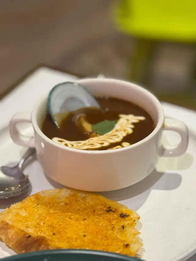 🔶法式龍蝦海鮮濃湯 - 將龍蝦部份煮湯,內有青口及一口龍蝦肉,濃郁鮮甜