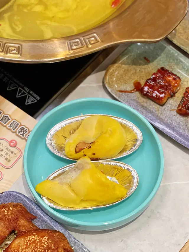 自助區方面,有五花八門的火鍋配料,當中較特別的有牡蠣、水魷魚、帆立貝、鵝腸、海螺片及海蜇花等;多款熟食如軟滑綿密的烤榴槤香氣更濃郁;精選點心如晶瑩剔透的蝦餃及燒賣等。