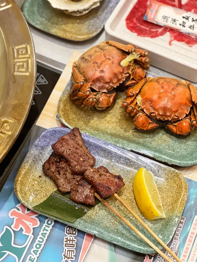 每日十多款海產不停補貨無限任撈任煮。厚肉爽身的鮮鮑魚有明顯的鮮甜味;細緻扎實的花蟹清甜鮮美,帶有天然的海潮鮮鹹味;三點蟹有著飽滿滑順的蟹黃蟹膏;大頭蝦肥厚結實好脆爽;沙白鮮甜無沙…