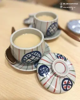 蒸蛋滑溜溜,有蜆肉、元貝、白果、蟹柳,充滿蛋香和鮮味