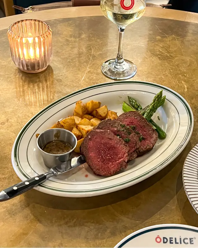 旁邊有味道有點似鵝肝的醬汁。配菜方面有蘆筍和薯仔。